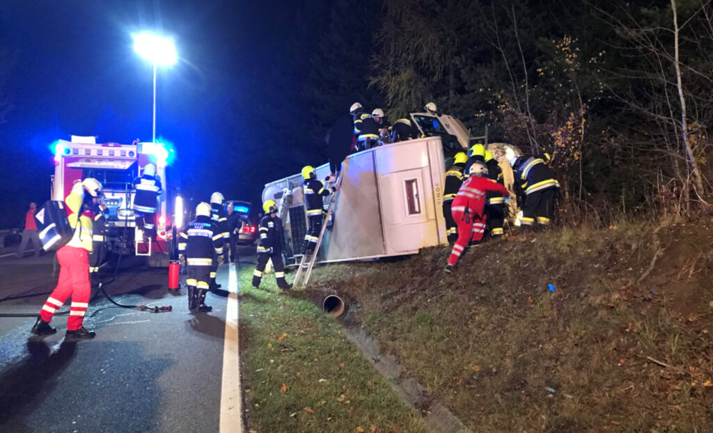 Am 14.11.2021 wurden um 03:01 Uhr die Feuerwehren Lavamünd, Hart und St.Paul zu einem Verkehrsunfall (VU3) auf die Südsteirischen Grenz Straße B69 alarmiert. Grund der Alarmierung war ein Verkehrsunfall mit einem umgestürzten Wohnmobil.
