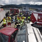 Bei dieser Alarmübung wurden mehrere Einsatzszenarien für den Ernstfall beübt. Als erstes Szenario galt es für die Feuerwehren einen schweren Verkehrsunfall mit mehreren eingeklemmten Personen abzuarbeiten. Eine halbe Stunden später wurden die Feuerwehren bereits zum nächsten Übungsschauplatz alarmiert. Hier galt es den Vollbrand eines Wirtschaftsgebäudes zu bekämpfen. Zusätlich musste das Objekt auf vermisste Personen durchsucht und mehrere Gasflaschen in Sicherheit gebracht werden. Beim letzten Übungszenario das Tages wurde ein Werkstättenbrand mit mehreren eingeklemmten und vermissten Personen simuliert. Durch den hohen Ausbildungsgrad der Einsatzkräfte konnten alles Übungsszenarien zur volllsten Zufriedenheit aller Übungsbeobachter abgearbeitet werden.